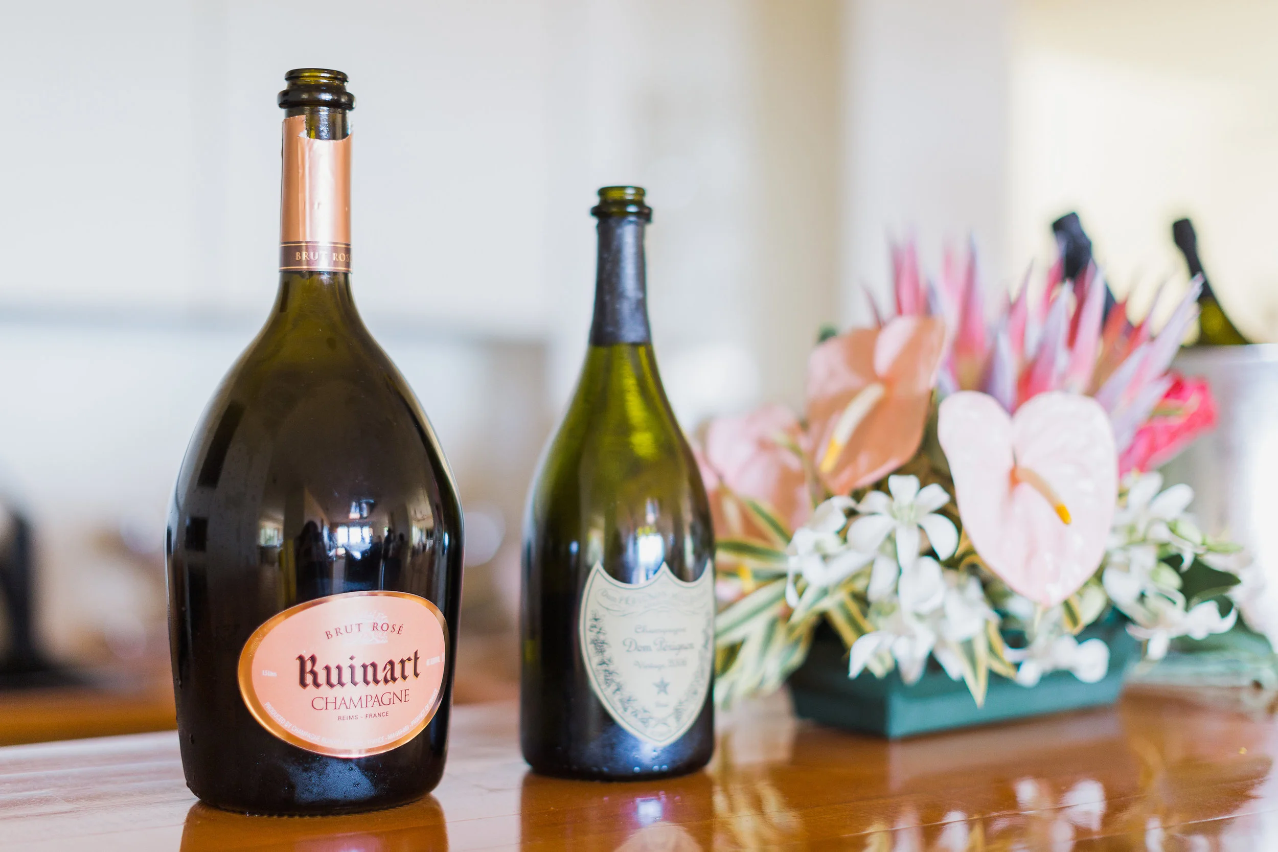 Cara and her bridesmaids had their make-up done and hair styled in the morning. Dressed in comfortable pink floral robes, they reminisced on all the good times while enjoying Ruinart Rose & Dom Perignon Vintage 2006. The special occasion also called for caviar - this Black River Caviar was truly spectacular and made the morning even more classy! After changing into her wedding dress and accessorizing with all the glittery details, it was time for the First Look.