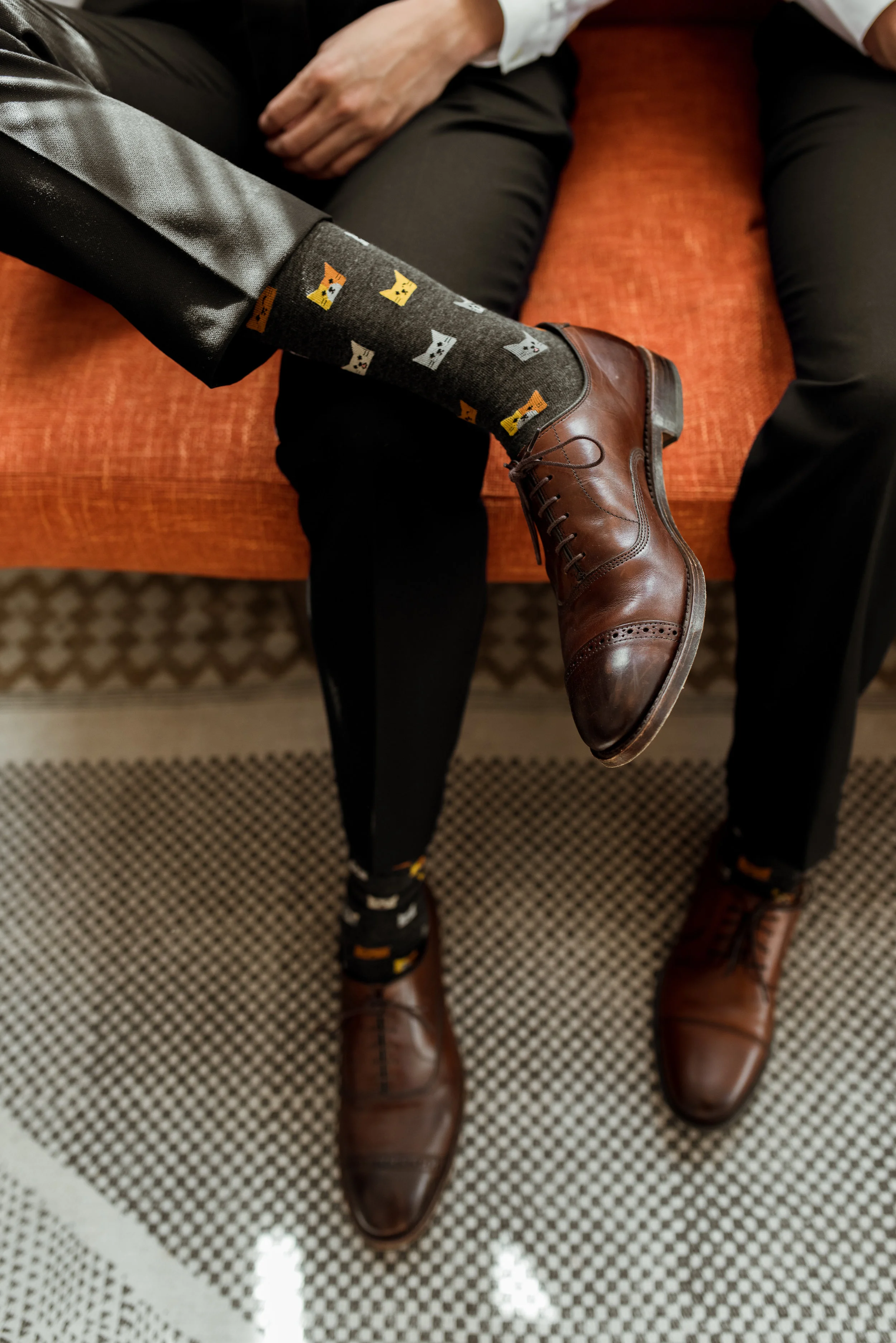 The Ruby Street has separate rooms for the bridal party to get ready, all decked out in the cutest furniture too! The bridesmaid helped Kristy get into her beautiful Vivienne Atelier dress and snapped photos of the special moment. In the next room, Danny had his groomsmen open gifts - the most adorable little pins of their pet cats and dogs! The pins looked so charming next to the boutonnieres and added so much personality! Did you catch the matching cat socks?