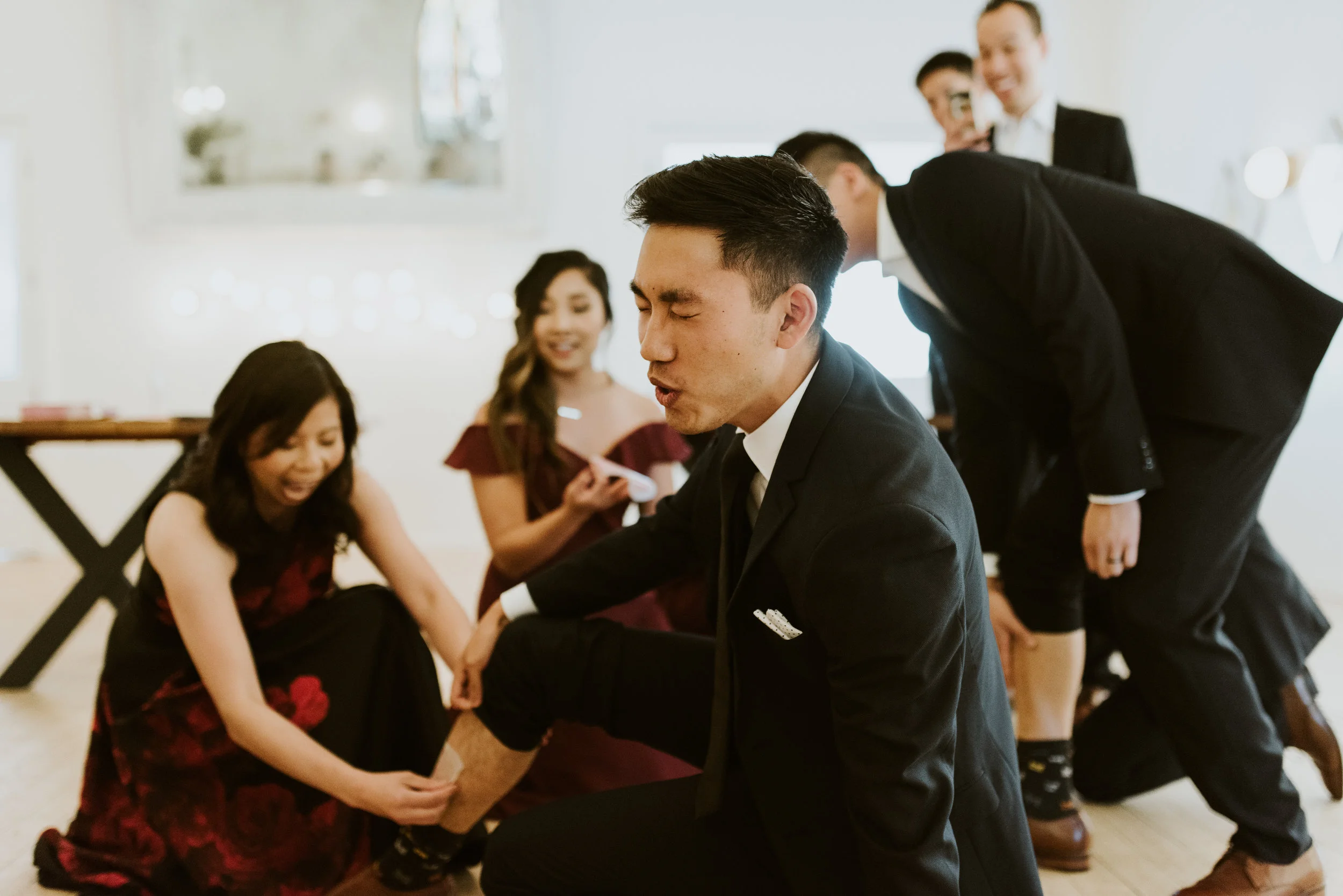 Kristy and Danny also incorporated some cultural elements into their wedding by playing Groom’s Games and having a Tea Ceremony. Before Danny could see the beautiful bride, he had to face challenges and overcome obstacles until the bridesmaids were satisfied. With the support of his groomsmen, Danny had to endure the pain of getting his legs waxed, correctly match Kristy’s face together, and serenade the girls with a Backstreet Boy song while dressed up! He did whatever it took to get to Kristy in the end! Afterward, Kristy and Danny served tea to their parents and close family members in exchange for lucky red envelopes.