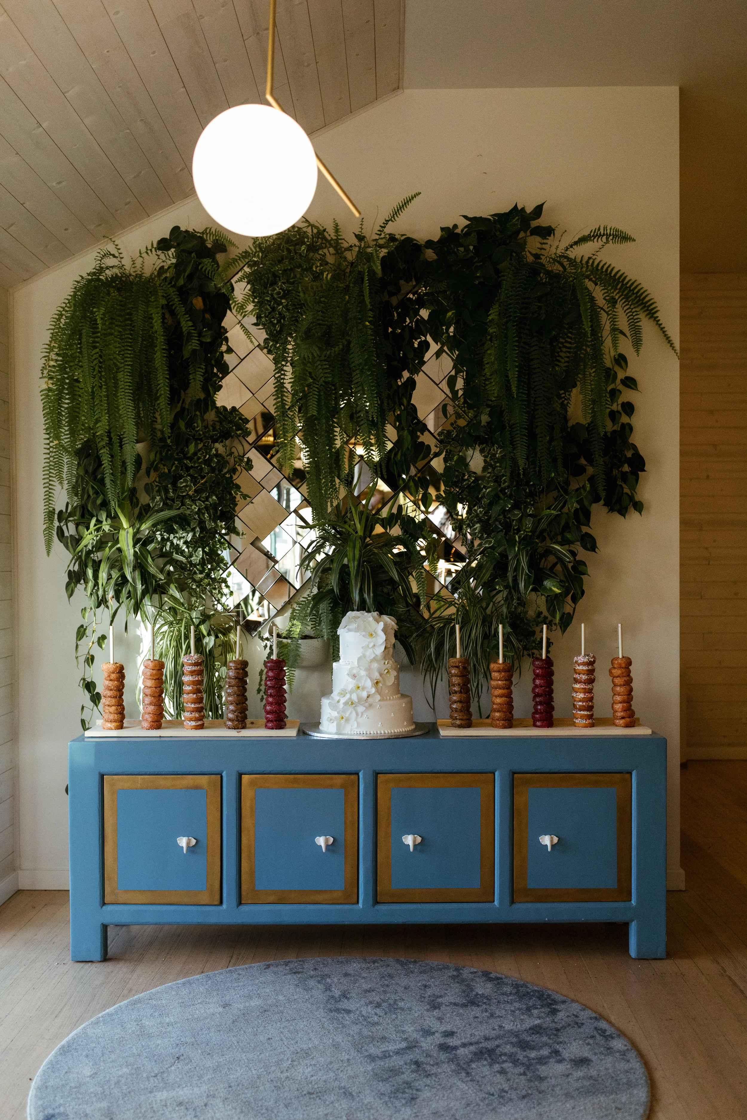 Kristy and Danny’s unique personality and style really came through in all aspects of the decor. Together, they designed all the invitations, signs, and a very creative and cute escort card display! Guests excitedly looked for their name to find out which cute cat pin they received! The long tables were draped with euclayptus garlands and flourished with more blooms in eclectic vases. The three tiered cake and assortment of donuts invited everyone inside for the reception. The rest of the evening was spent laughing, eating, toasting, and most definitely dancing the night away!