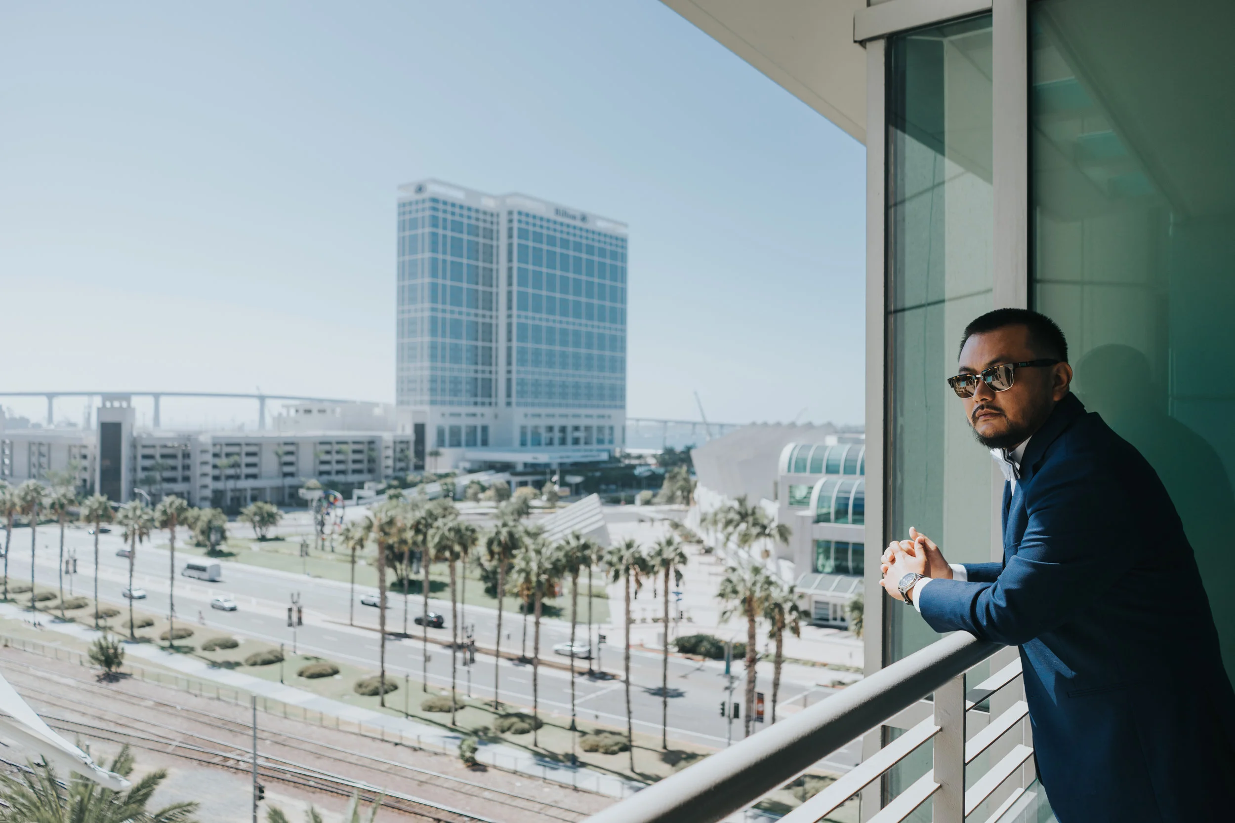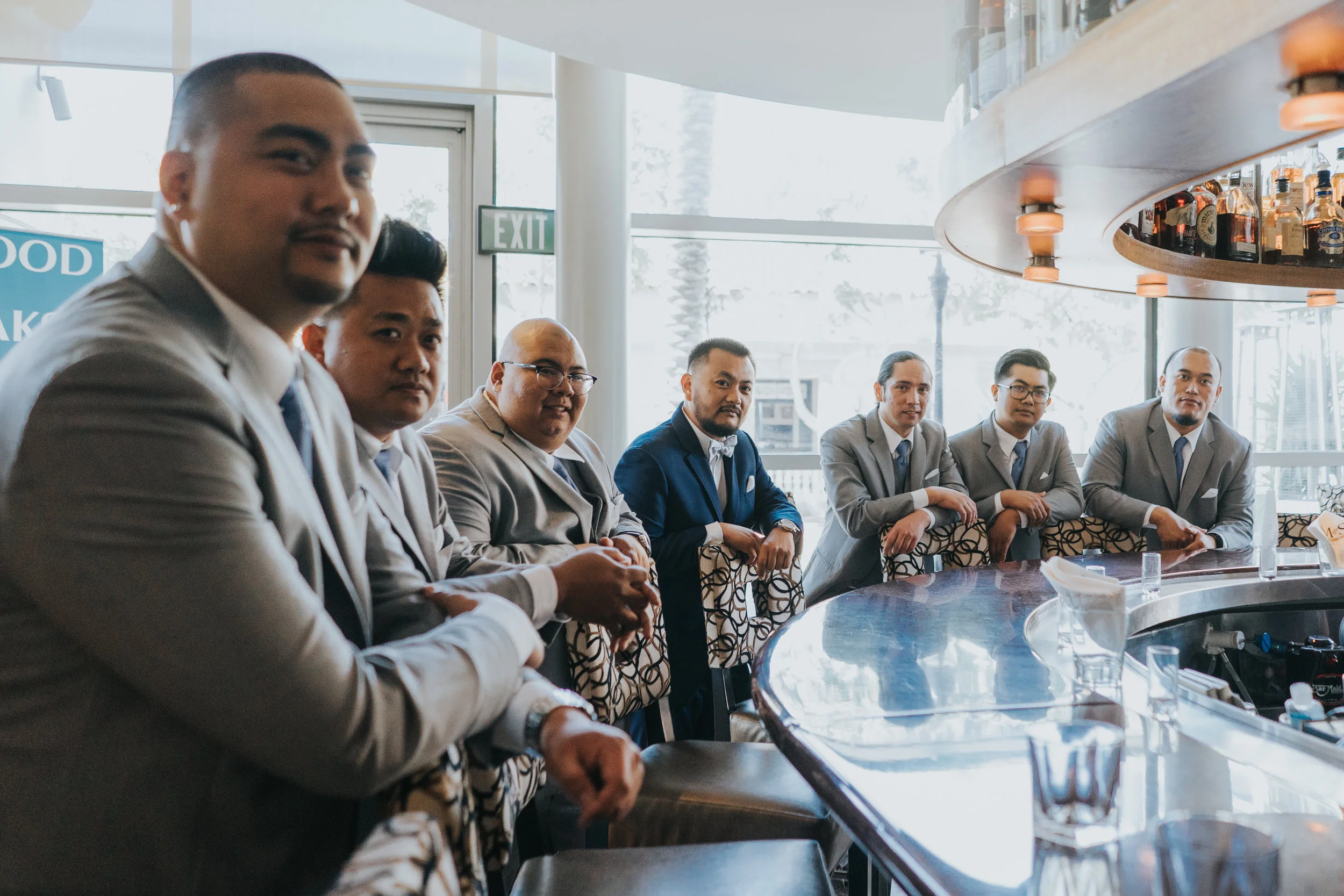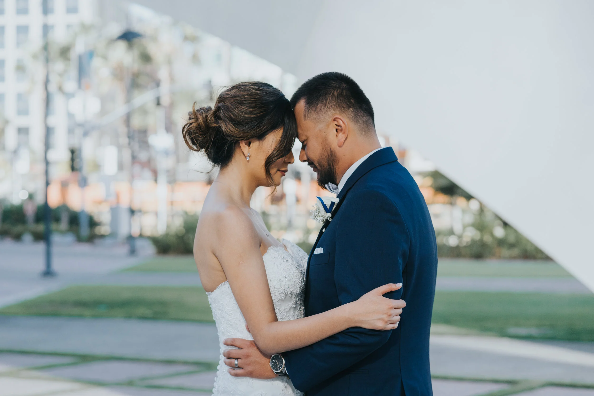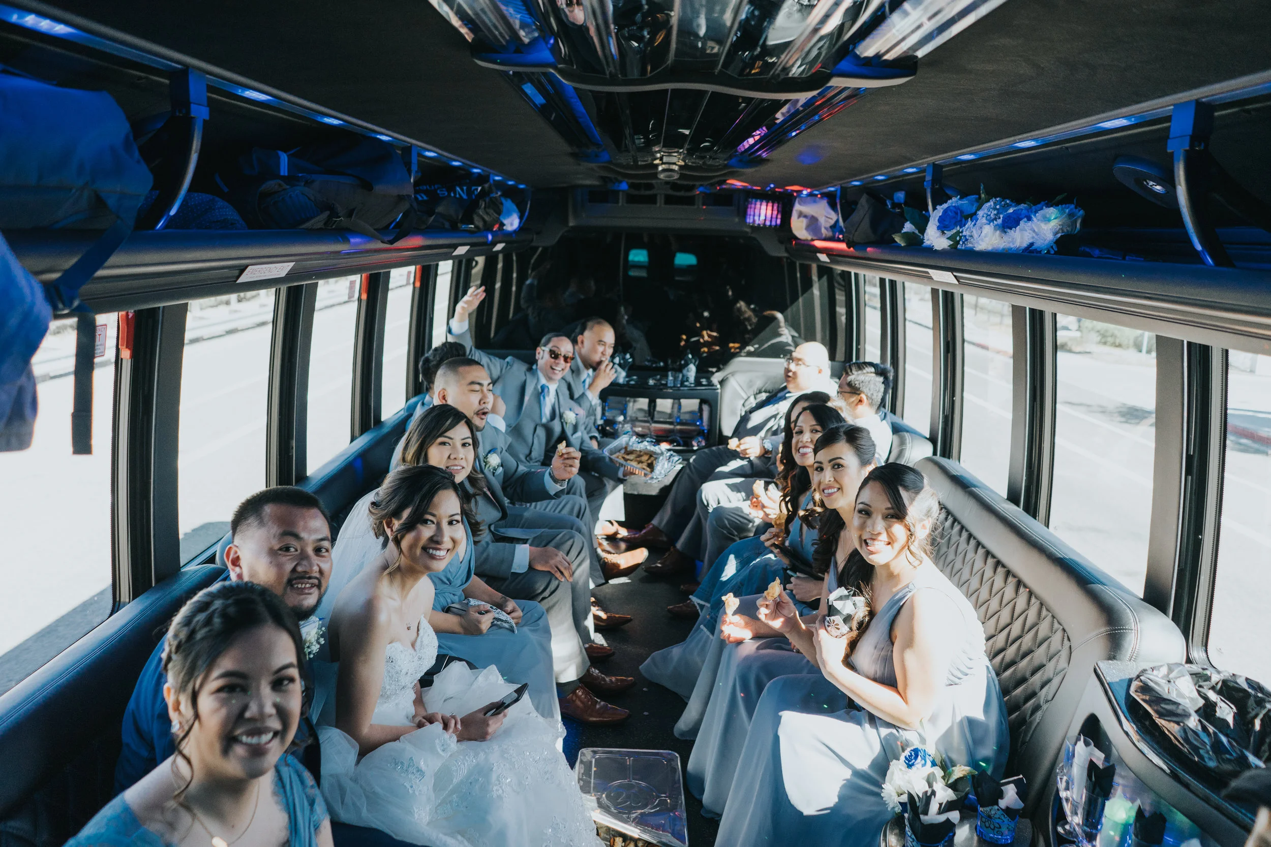 It was a beautiful, classic, sunny San Diego day that Vicem and Mary Ann got married. After the beautiful ceremony, the wedding party hopped in the Top Dog Limo and took photos near Petco Park. The ladies looked lovely in the dusty blue dresses and Mary Ann looked absolutely stunning in her dress and long, flowing veil. Vicem and his groomsmen were charming in their grey suits.