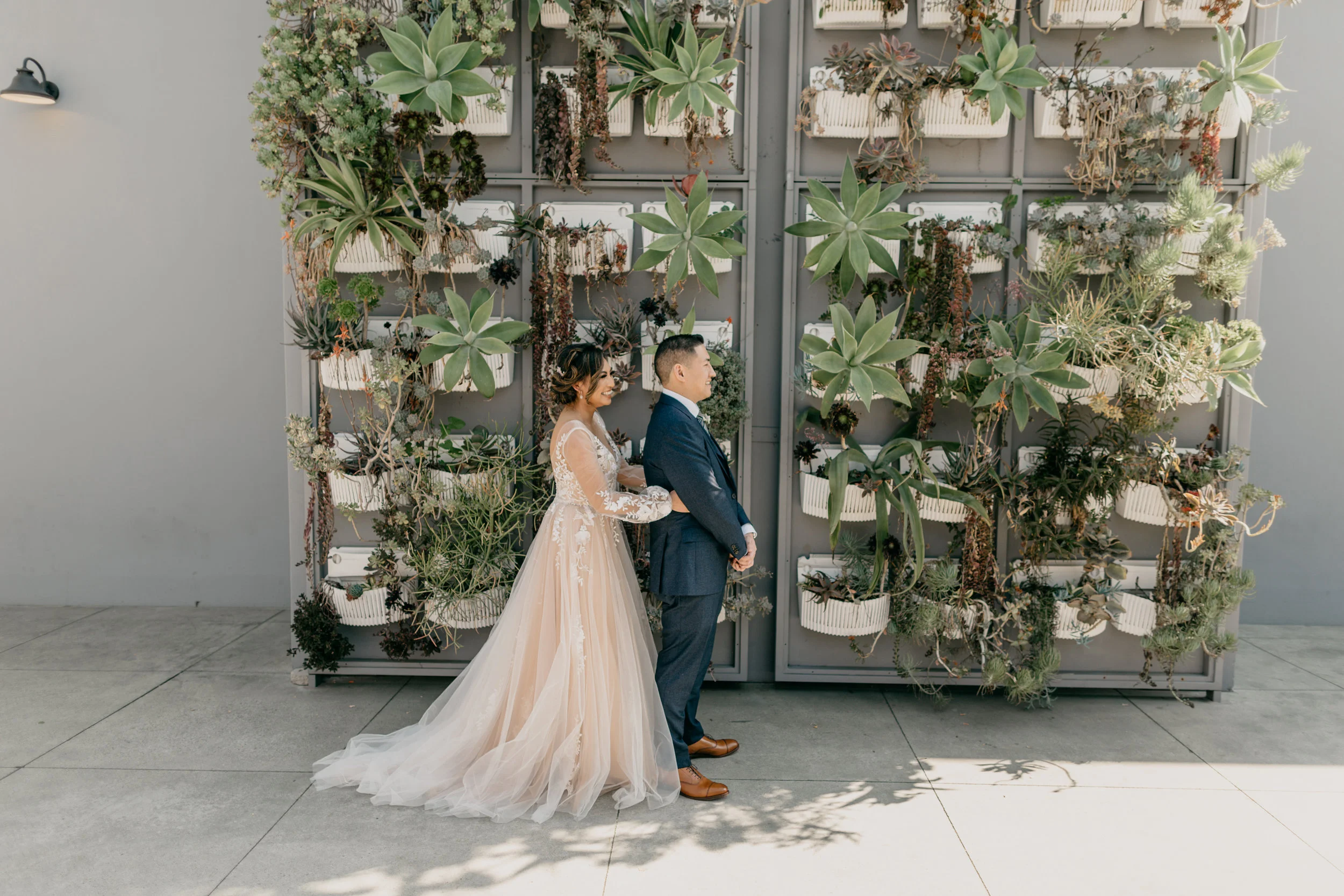 The Colony House was the perfect venue! After getting ready at the hotel, Eula and Andrew exchanged their First Look by the living wall of plants on the outdoor patio. Seeing their happy smiles makes me all giddy inside! Eula is absolutely perfect in her blush wedding dress with delicate floral embroidery. Andrew looked equally handsome in his blue suit.