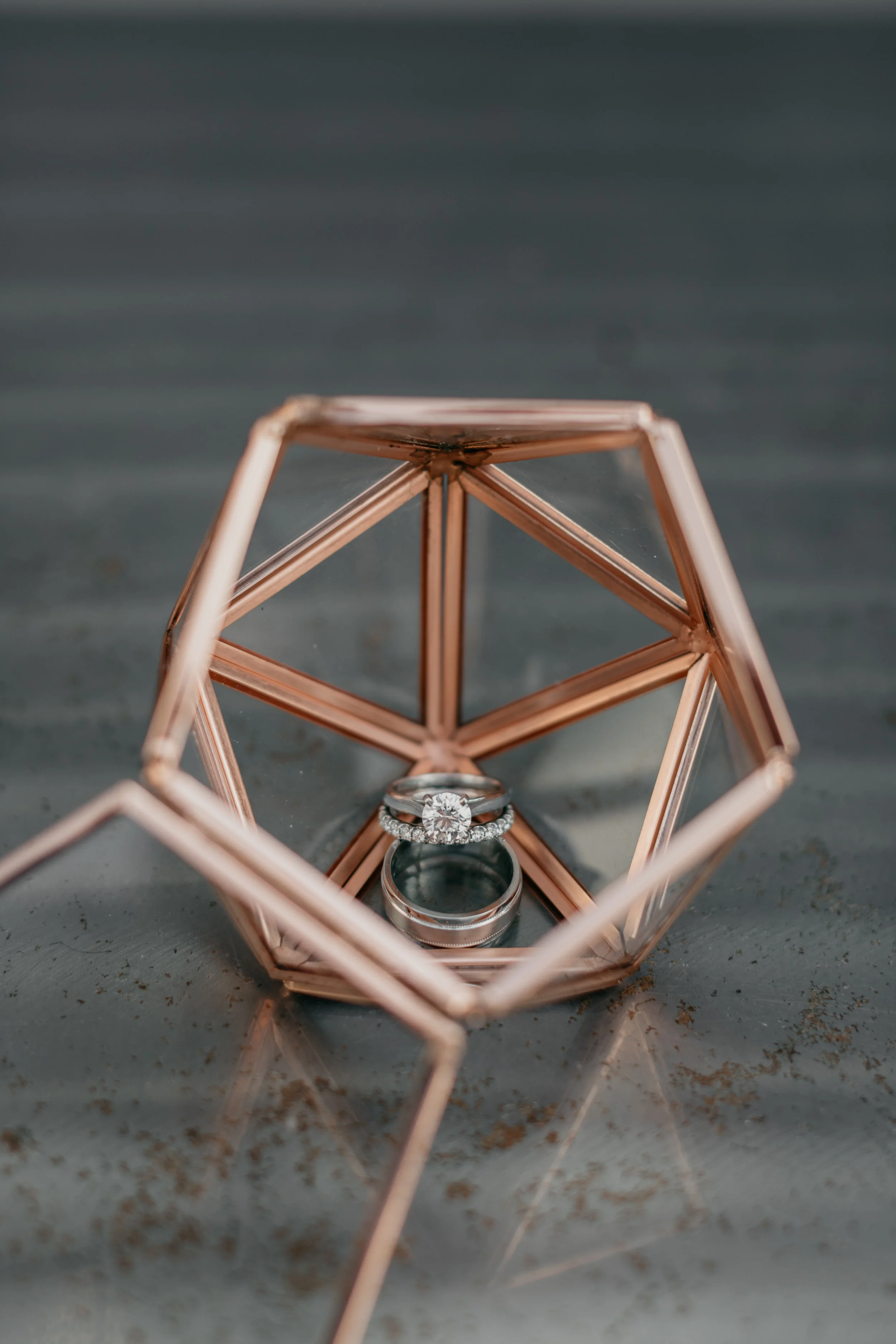 Eula’s father made many of the decor elements for the wedding! He created the arch out of copper rods, built stands for the welcome sign and seating chart, and also the table number stands too! So glad we were able to work with Cindy to add beautiful blooms everywhere! We also had a little bit of a geometric element in our decor that could be found on the welcome table and the reception tables centerpieces. Lastly, dancing candlelight everywhere! We used tall hurricane glasses in varying sizes, pillar candles, and floating candles to light up the ceremony area and aisleway.